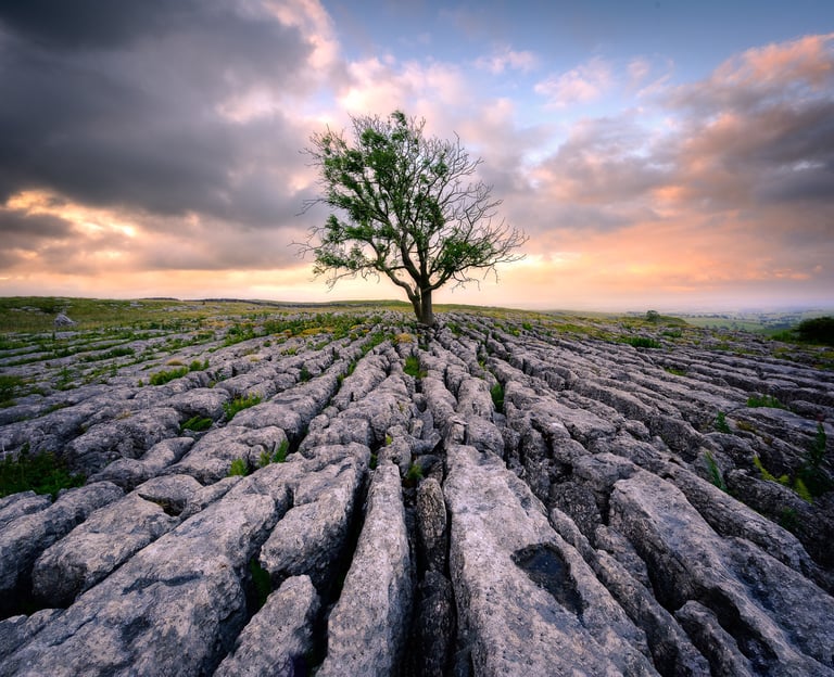 We all know weather apps and forecasts are not reliable, especially in the UK. But we still use them. Sunrise prediction for dawn was good. Cloud over Malham with no cloud to the east. I'd located a likely target of a lone tree, but with a 2-hour drive and it being July a 2:30 am alarm call was required. Do I trust the apps. Of course I do. The result is I arrived before dawn, locate the tree, set up a composition and wait. There is a lot of cloud moving quickly above but there is a gap to the east, which then closes up with a faint orange glow but no direct light on the tree I'd hoped for. Oh well, some you win some you don't.